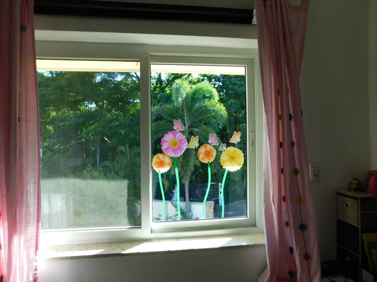 Fenster Wand Aufkleber Sticker - STKY22 Blumen Schmetterlinge Stengel Blätter kreative Dekoration für Ihre Räume