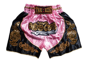 Kampfgeist im Mini-Format: Trendige Muay Thai Shorts für Kids! (Rosa-Schwarz XXS-M)
