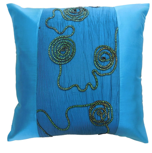 Housse de coussin motif fleurs lierre bleu clair 40x40cm/15.5x15.5in canapé-lit en soie thaïlandaise chaise de jardin