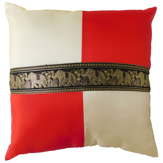 Housse de coussin et chemin de table SET 3 pièces bicolore éléphant bordure anniversaire mariage fête salon cuisine nappe hôtel Thai soie Thai Silk