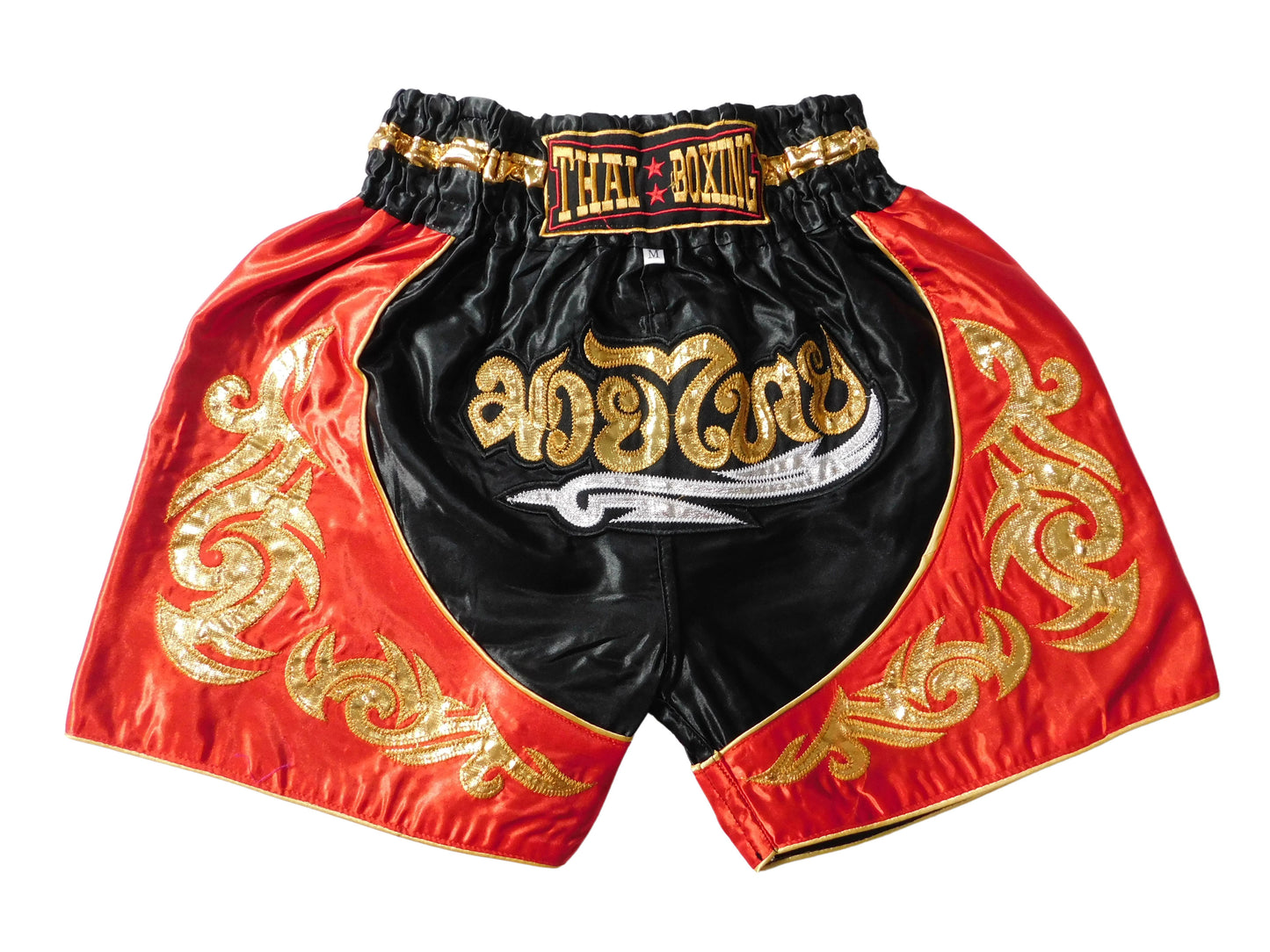 Kampfgeist im Mini-Format: Trendige Muay Thai Shorts für Kids! (Schwarz - Rot XXS-M)