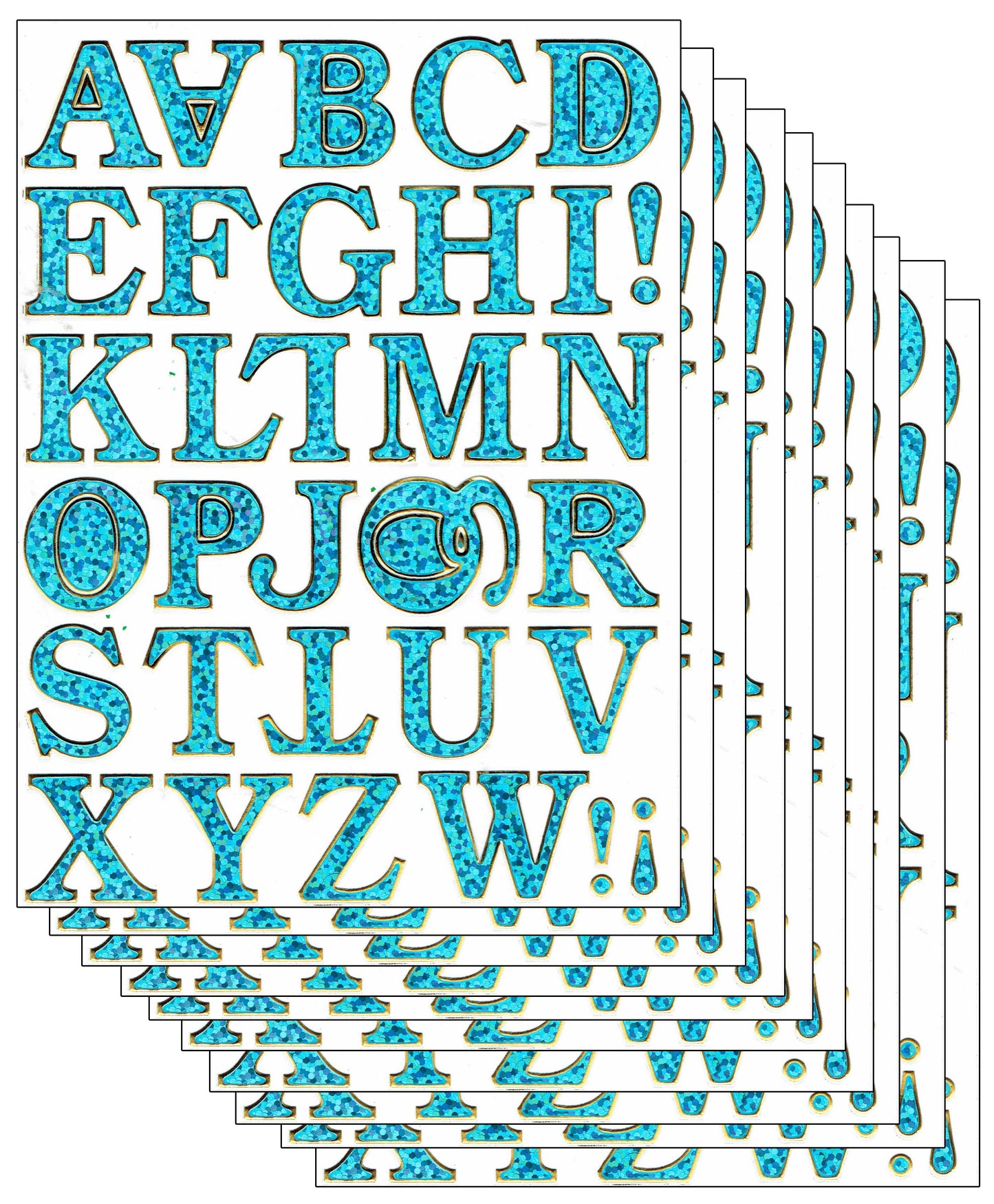 10ER Vorteilsangebot Buchstaben ABC blau Aufkleber Sticker metallic Glitzer Effekt für Kinder Basteln Kindergarten Geburtstag 10 Bogen 178