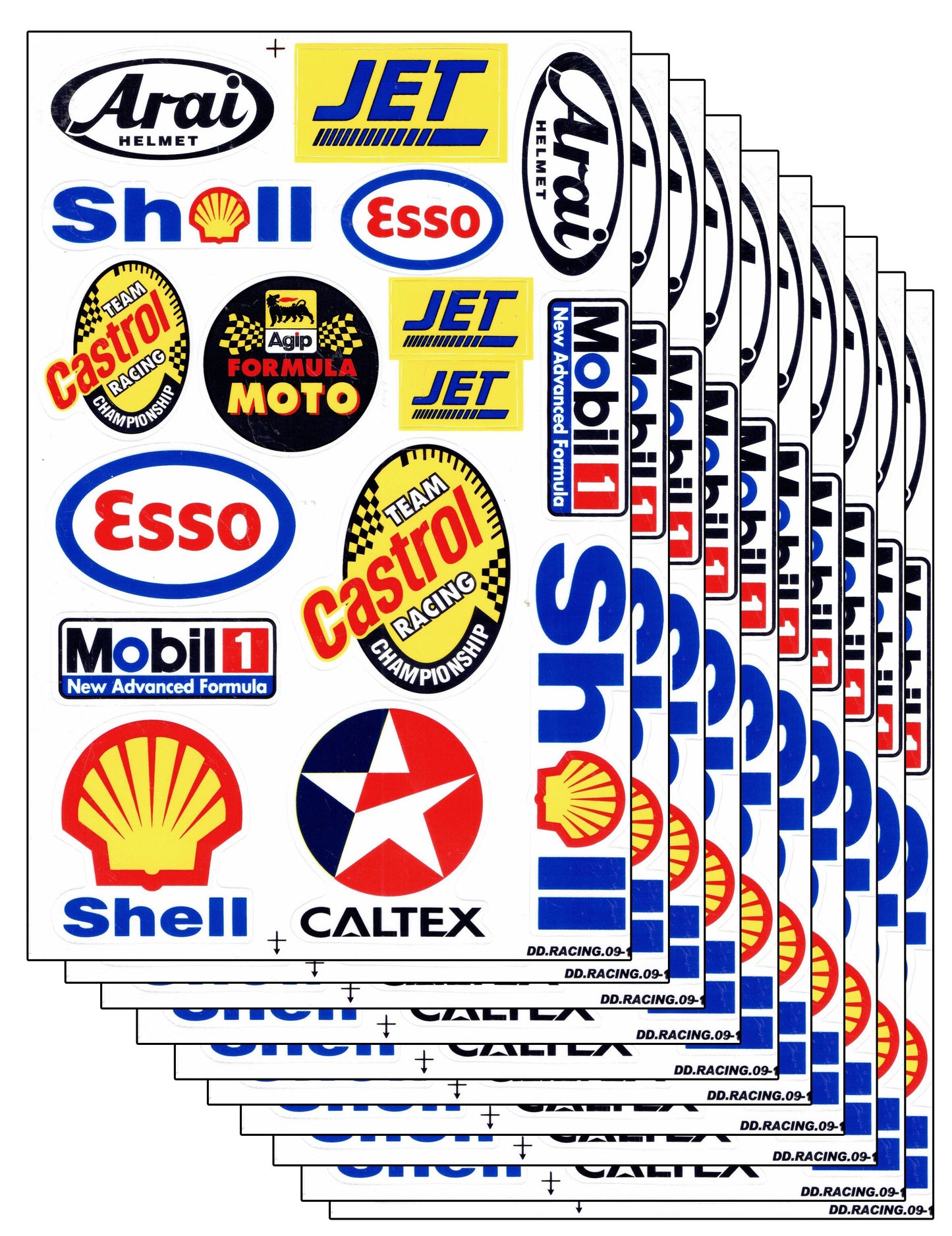 10ER Vorteilspack Sponsoren Logo Aufkleber Sticker Motorrad Moped Roller Skateboard Auto Tuning Modellbau selbstklebend 084