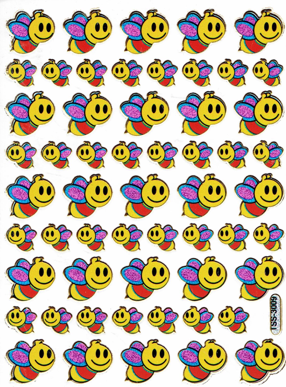 Biene Hummel Wespe bunt Tiere Aufkleber Sticker metallic Glitzer Effekt Kinder Basteln Kindergarten 1 Bogen 074