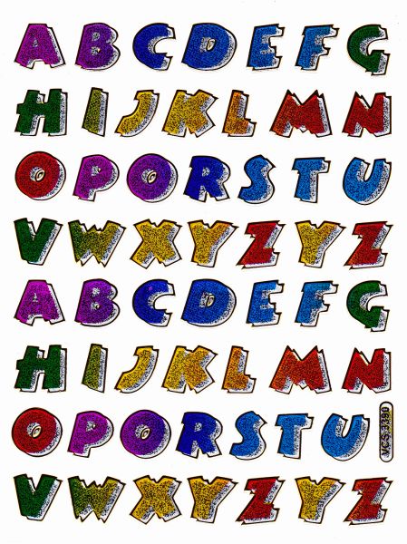 Buchstaben ABC bunt Höhe 12 mm Aufkleber Sticker metallic Glitzer Effekt Schule Büro Ordner Kinder Basteln Kindergarten 1 Bogen 132