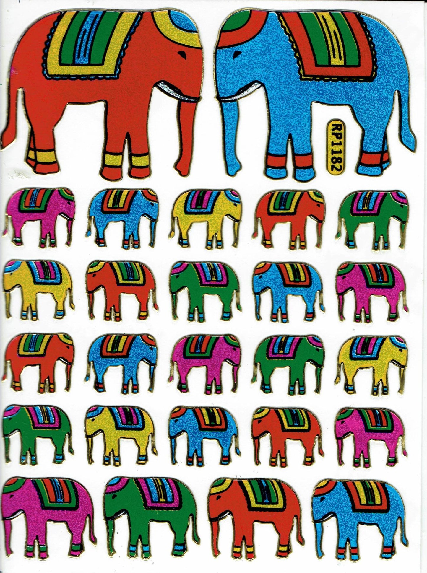 Elefant Elefanten bunt Tiere Aufkleber Sticker metallic Glitzer Effekt Kinder Basteln Kindergarten 1 Bogen 430