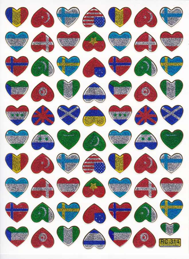 Flaggen Europa Herz Herzen bunt Liebe Aufkleber Sticker metallic Glitzer Effekt für Kinder Basteln Kindergarten Geburtstag 1 Bogen 339