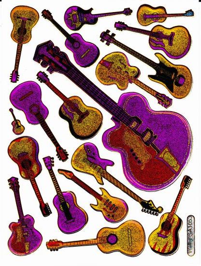 Gitarre Musik Band Aufkleber Sticker metallic Glitzer Effekt Schule Kinder Basteln Kindergarten 1 Bogen 359