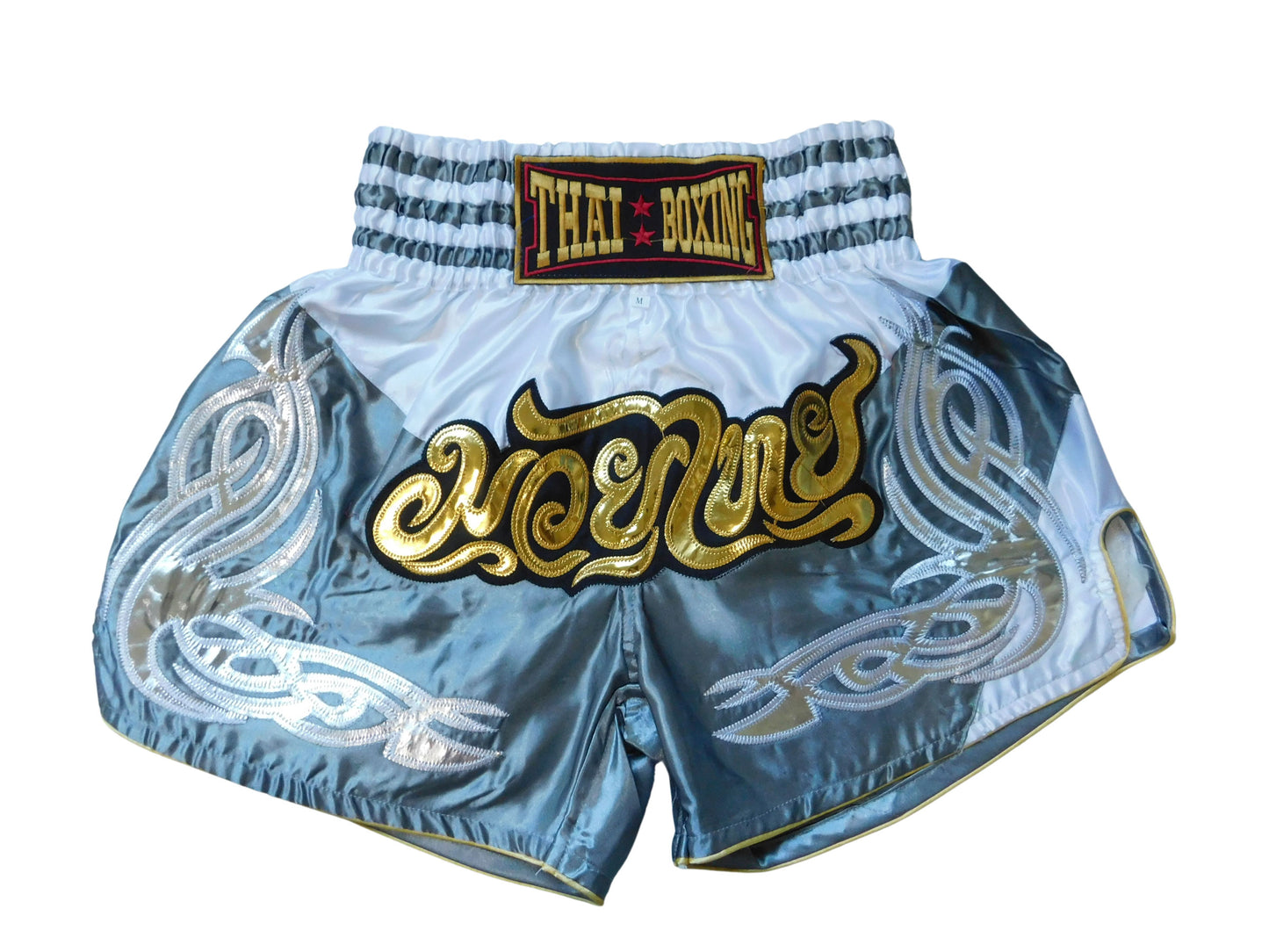 Kraftvoll und Stilvoll: Moderne Muay Thai Shorts für Erwachsene! (Weiß Grau unisex M-L-XL-XXL-3XL)
