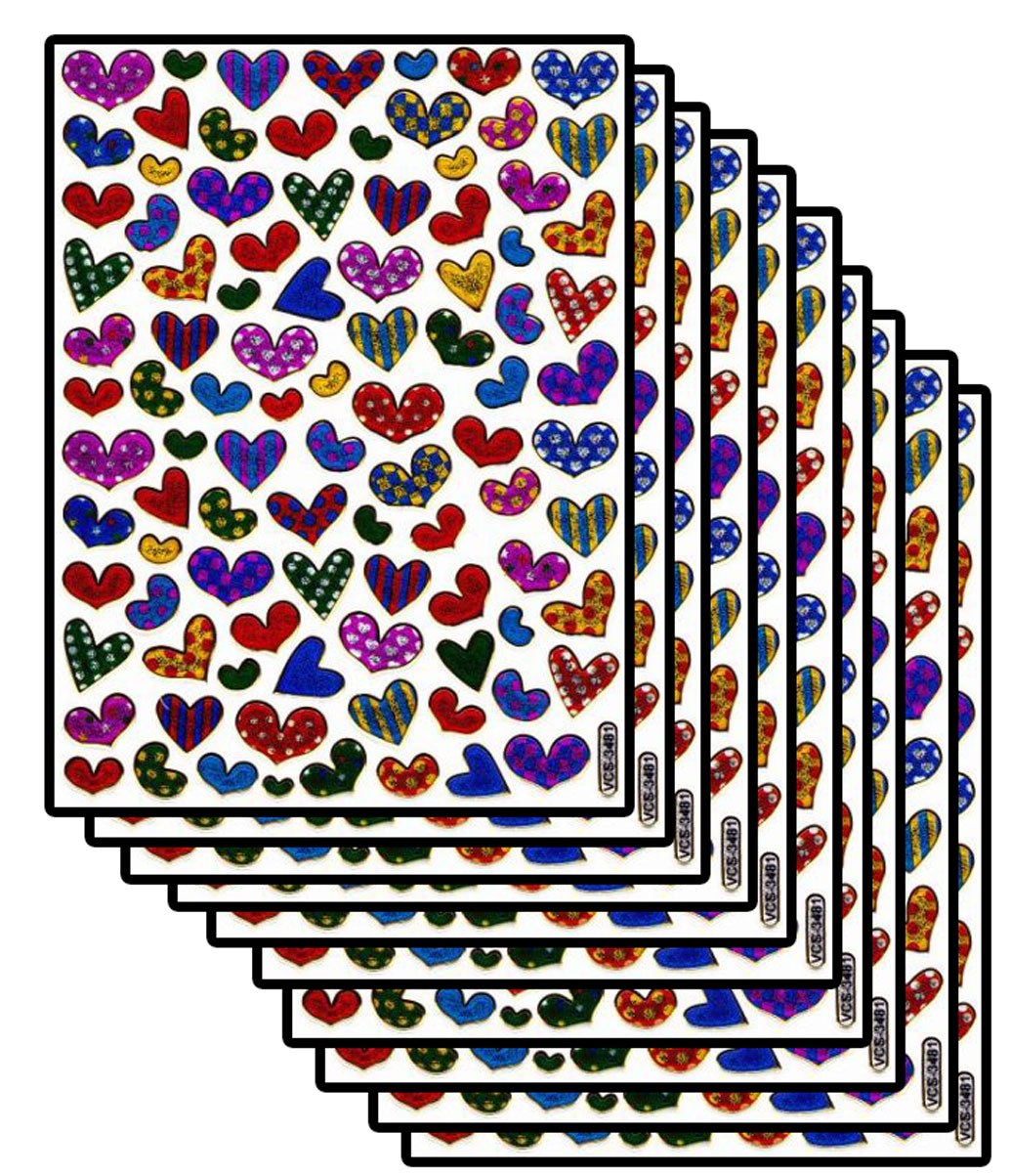 Sparset 10 Bogen Herz Herzen Liebe bunt 1000 Aufkleber Sticker metallic Glitzer Effekt für Kinder Basteln Kindergarten Geburtstag