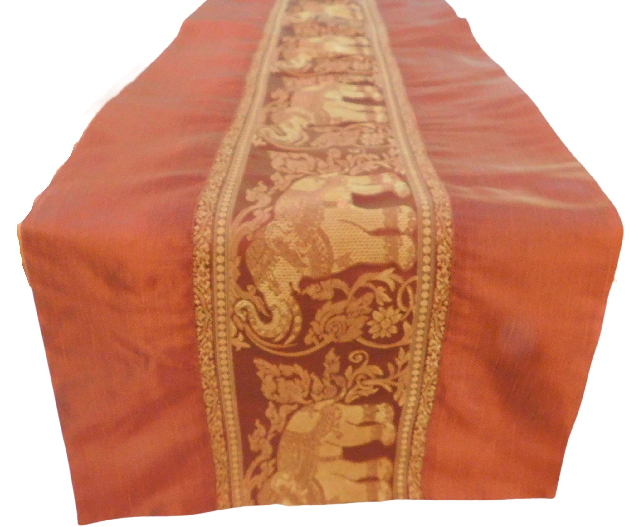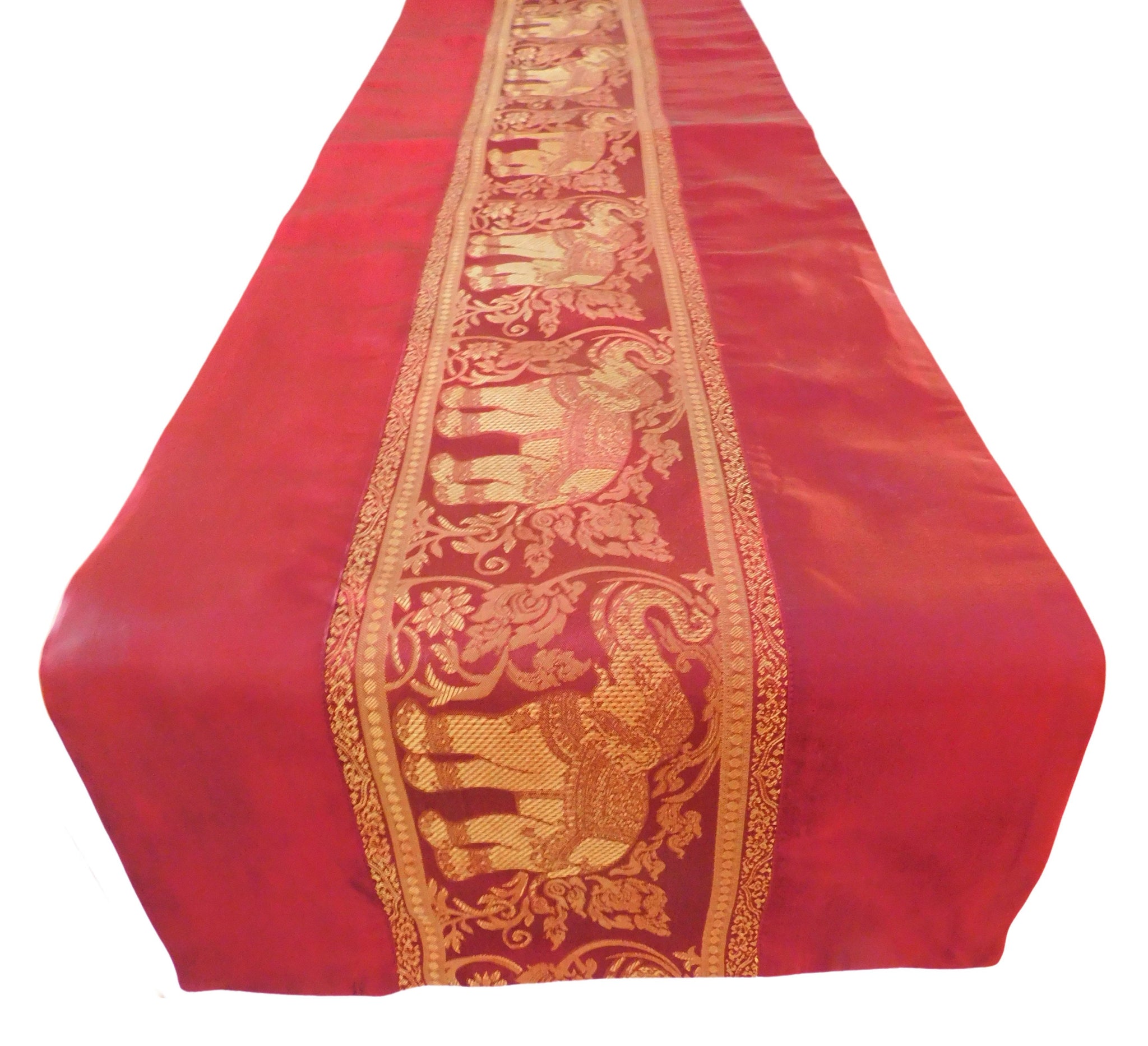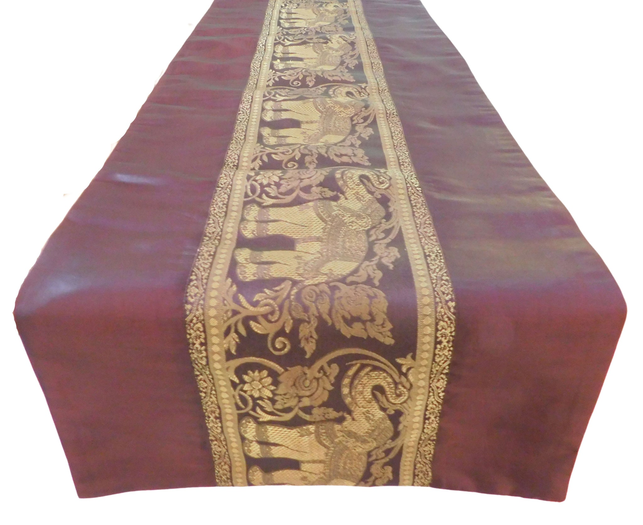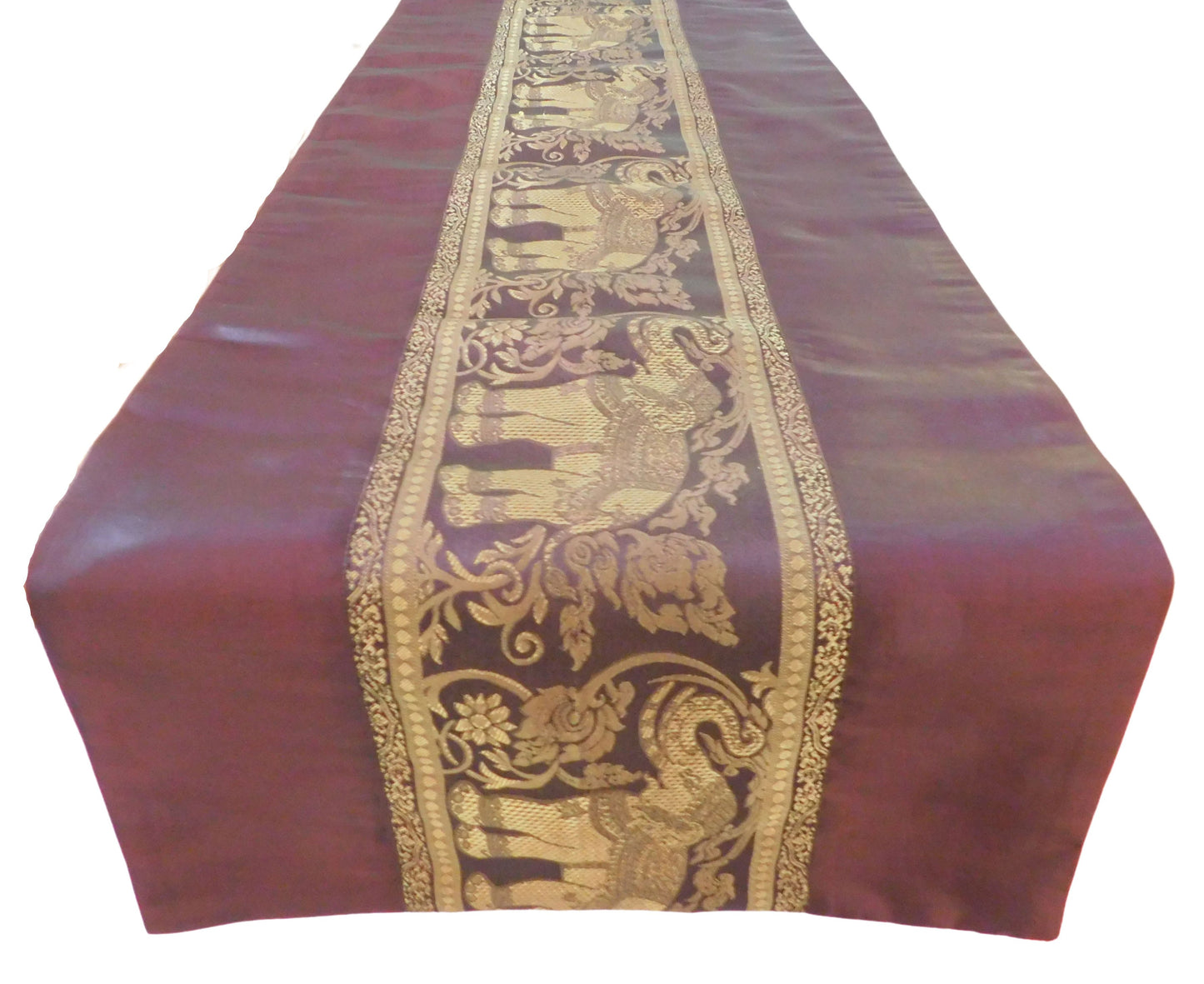 Tischläufer mit Elefanten Borte Weihnachten Festival Geburtstag Hochzeit Party Wohnzimmer Küche Tischdecke aus Thai Seide Thai Silk