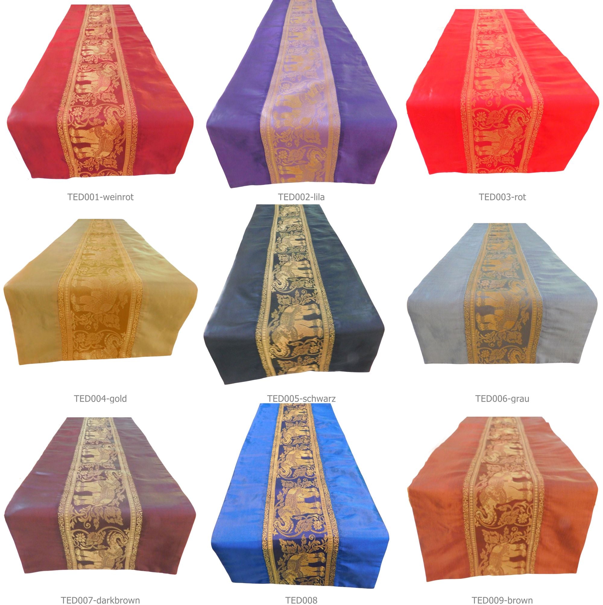 Material: Dieser Tischläufer wurde aus einer Mischung aus thailändischer Seide und Polyester handgefertigt. Es wird empfohlen, ihn nicht in der Waschmaschine, sondern mit der Hand zu waschen.
