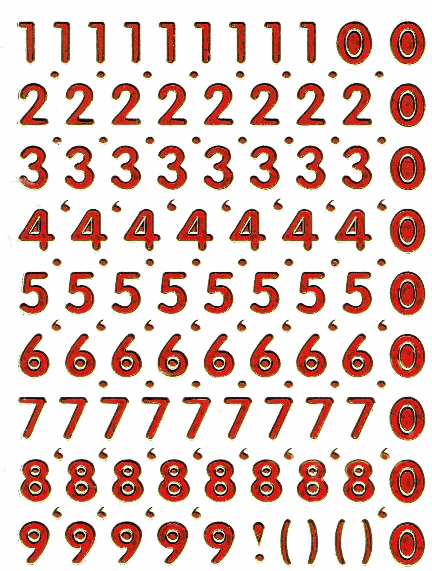 Zahlen Nummern rot 123 Höhe 10 mm Aufkleber Sticker metallic Glitzer Effekt Schule Büro Ordner Kinder Basteln Kindergarten 1 Bogen 297