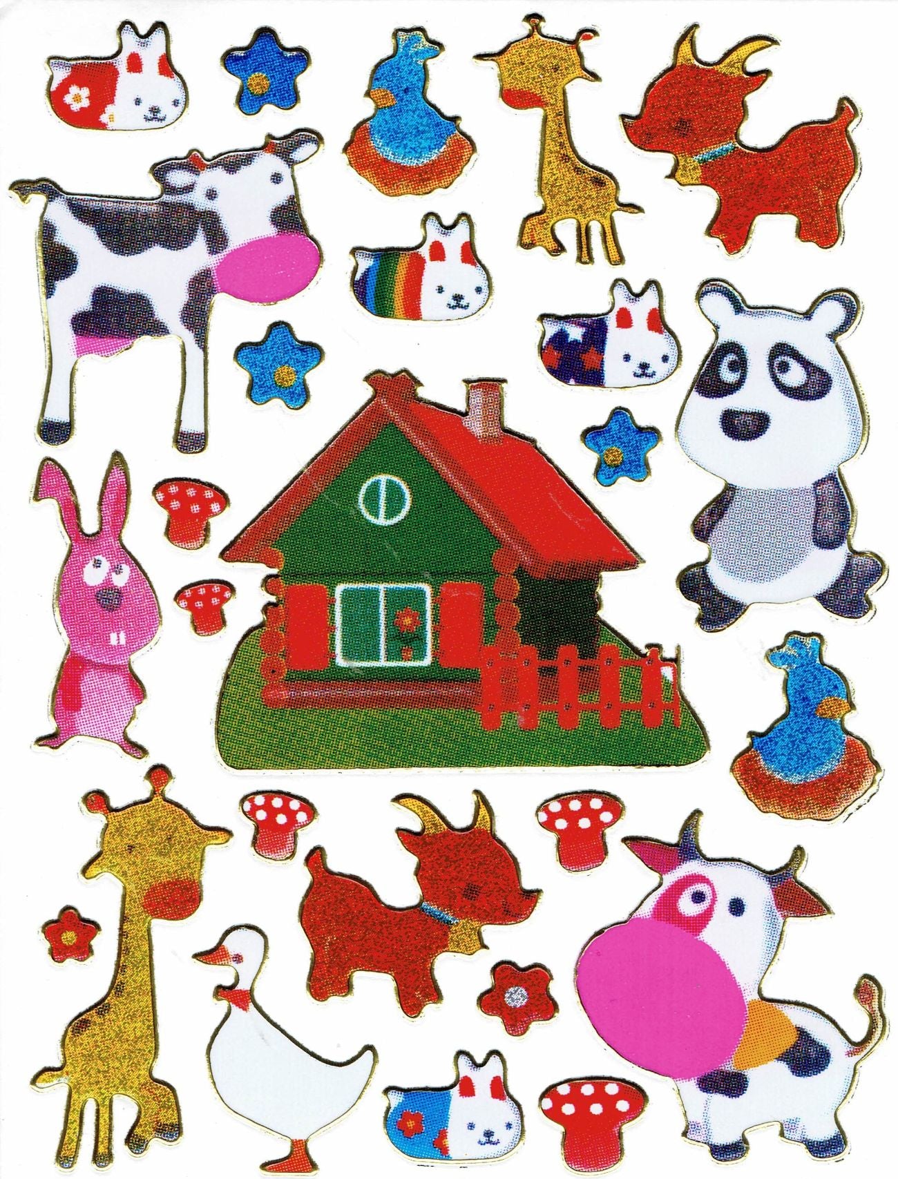 Ziege Hase Kuh Farm bunt Tiere Aufkleber Sticker metallic Glitzer Effekt Kinder Basteln Kindergarten 1 Bogen 190